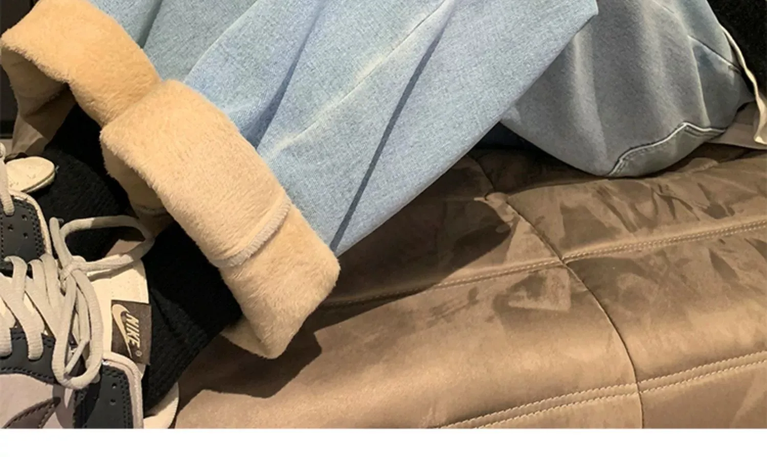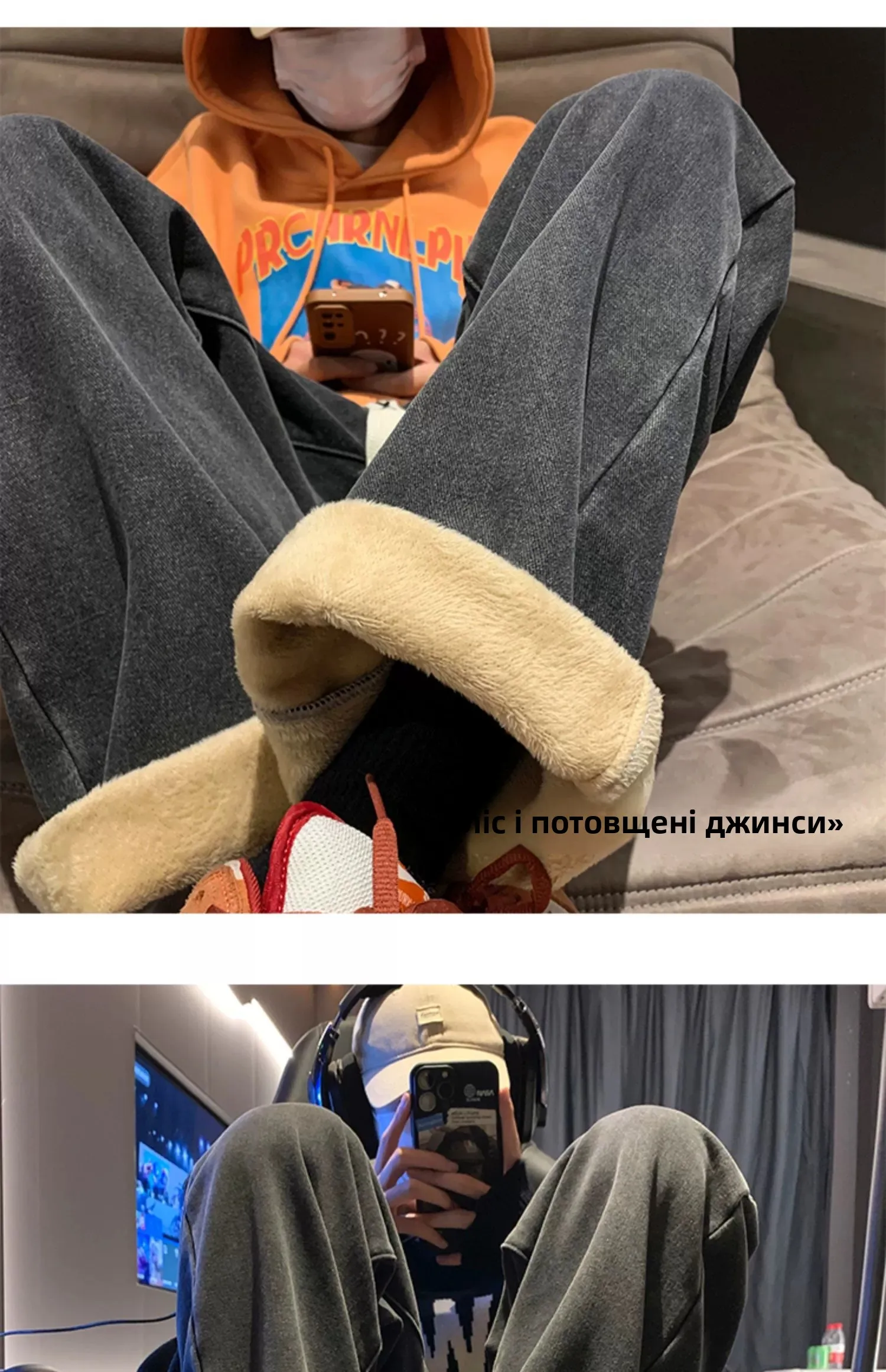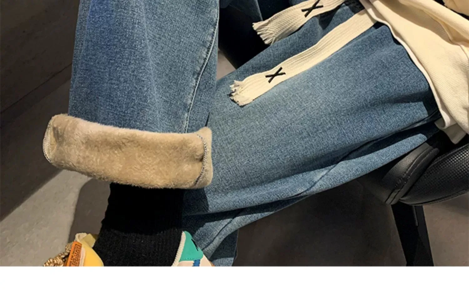 Experience ultimate comfort with these thickened fleece-lined jeans, perfect for winter wear.