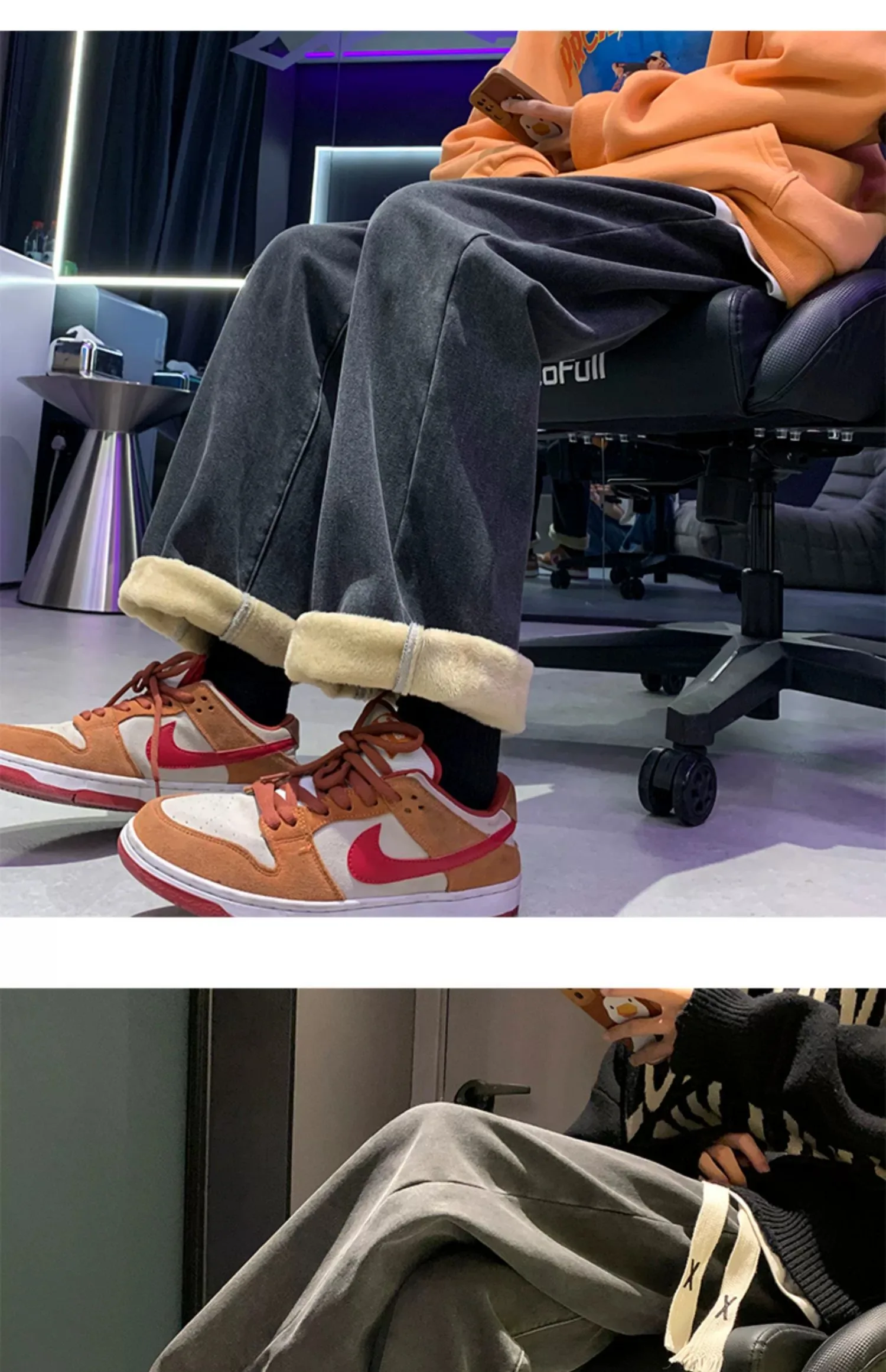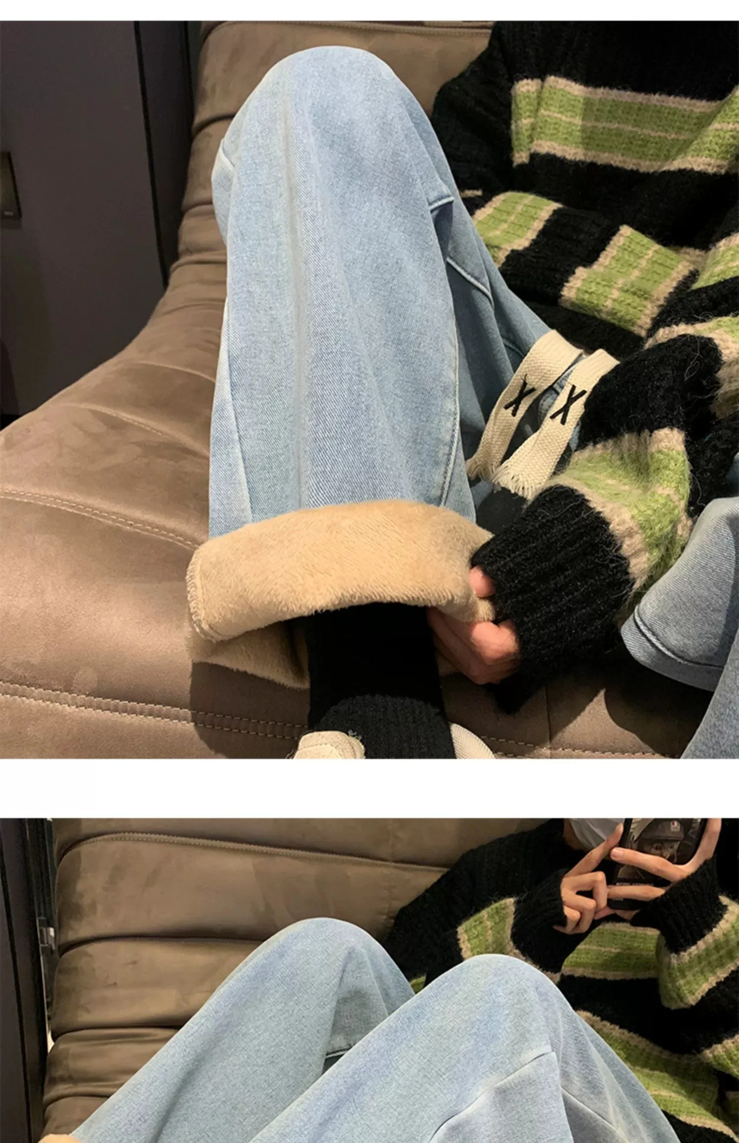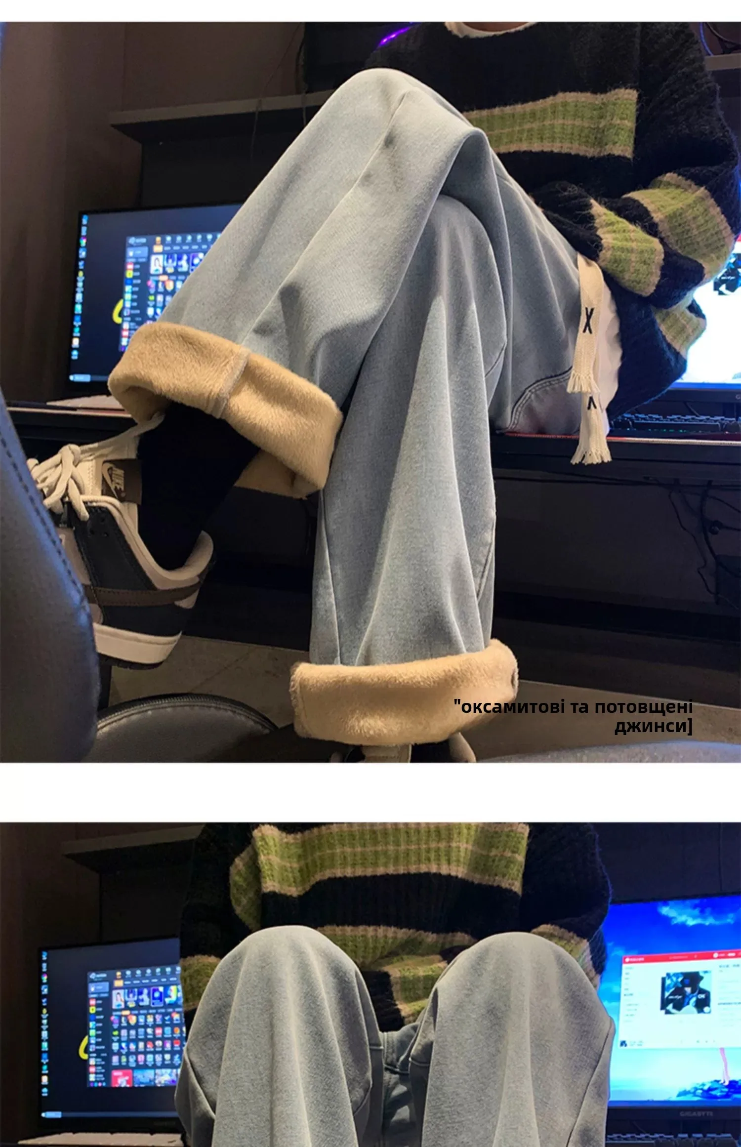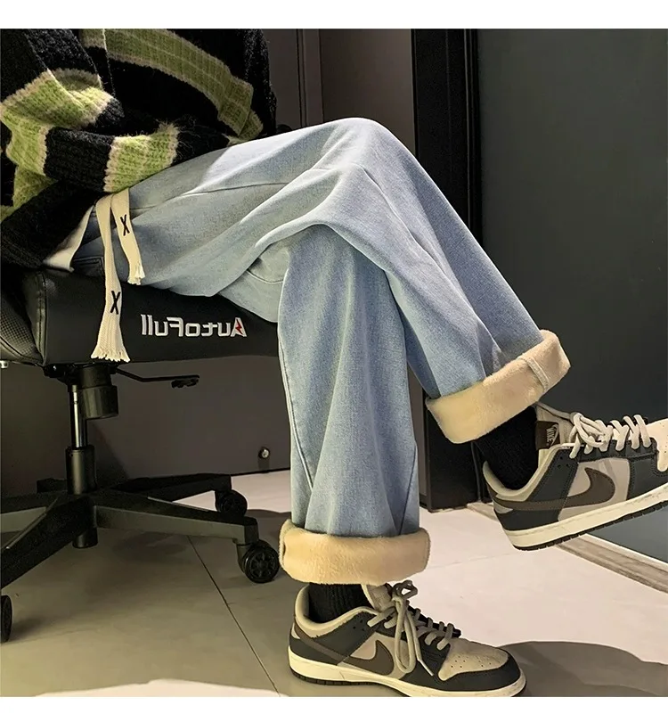 Experience ultimate comfort with these thickened fleece-lined jeans, perfect for winter wear.